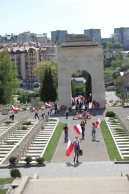 Do modlitwy i zadumy skłaniał rząd białych krzyży na Cmentarzu Orląt. Spoczywają tam obrońcy Lwowa z okresu walk polsko-ukraińskich o miasto (1918-1919) oraz wojny polsko-bolszewickiej 1919-1920 roku. Świętokrzyska młodzież na wybranych krzyżach zawiązała biało-czerwone wstęgi.