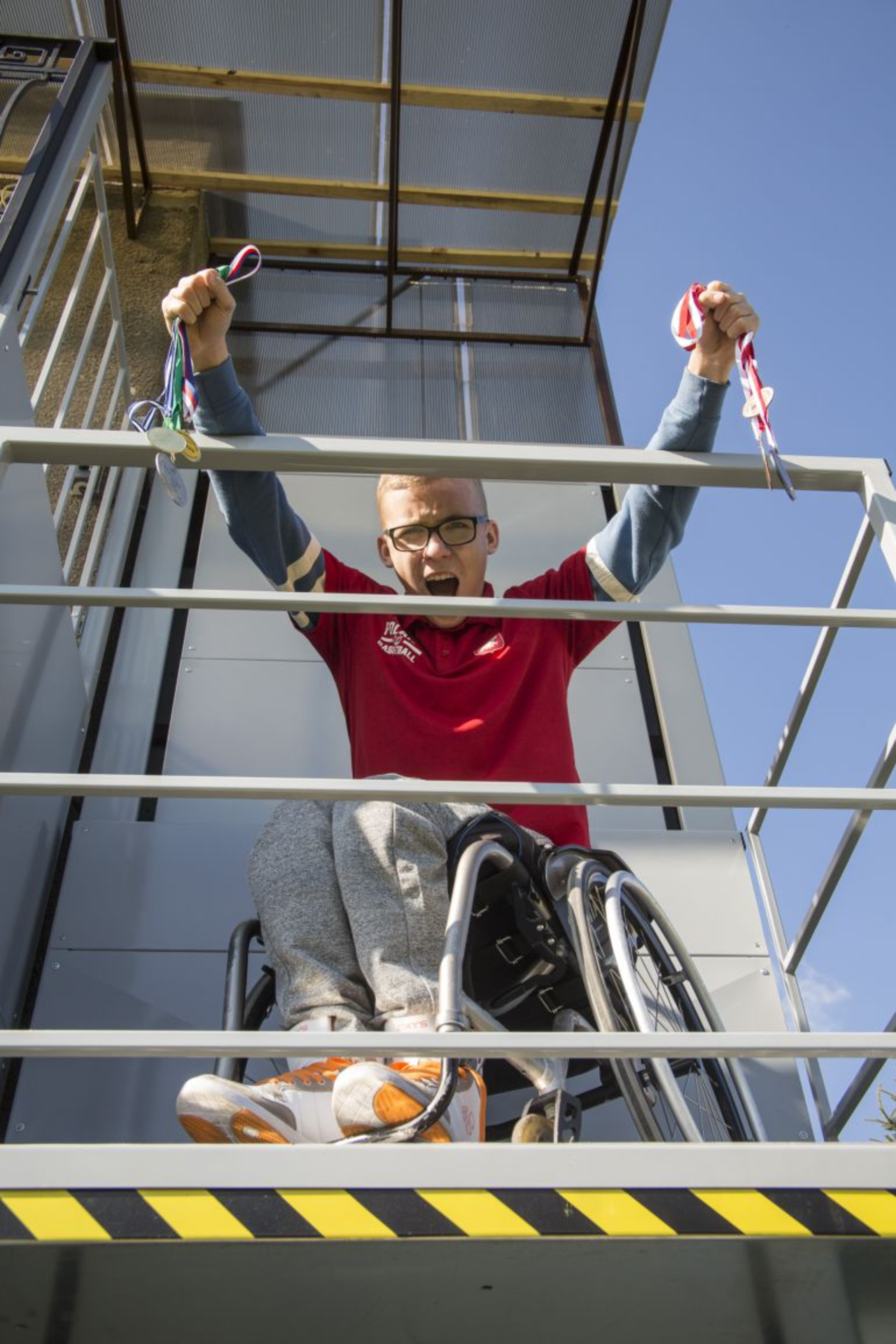 Po śmierci męża Marzena Sobieraj mieszka z synem w starym bloku nauczycielskim. Na pierwszym piętrze. Gdy chłopiec był mniejszy, jakoś sobie radzili. Ostatnio wózek znosiła mama, a Krystian siadał na stopniu i opierając się na rękach pokonywał osiem schodów w dół, do półpiętra, a potem jeszcze sześć. Wsiadał na wózek, przejeżdżał kilka metrów i znowu musiał zsiąść i przebrnąć przez pięć schodków na zewnątrz, siadając na stopniach i przekładając bezwładne nogi. Dziewiętnaście schodków w dół i dziewiętnaście w górę, kilka razy dziennie. Do szkoły, na trening, do kolegów. Tym, co mogło mu ułatwić życie, była winda.