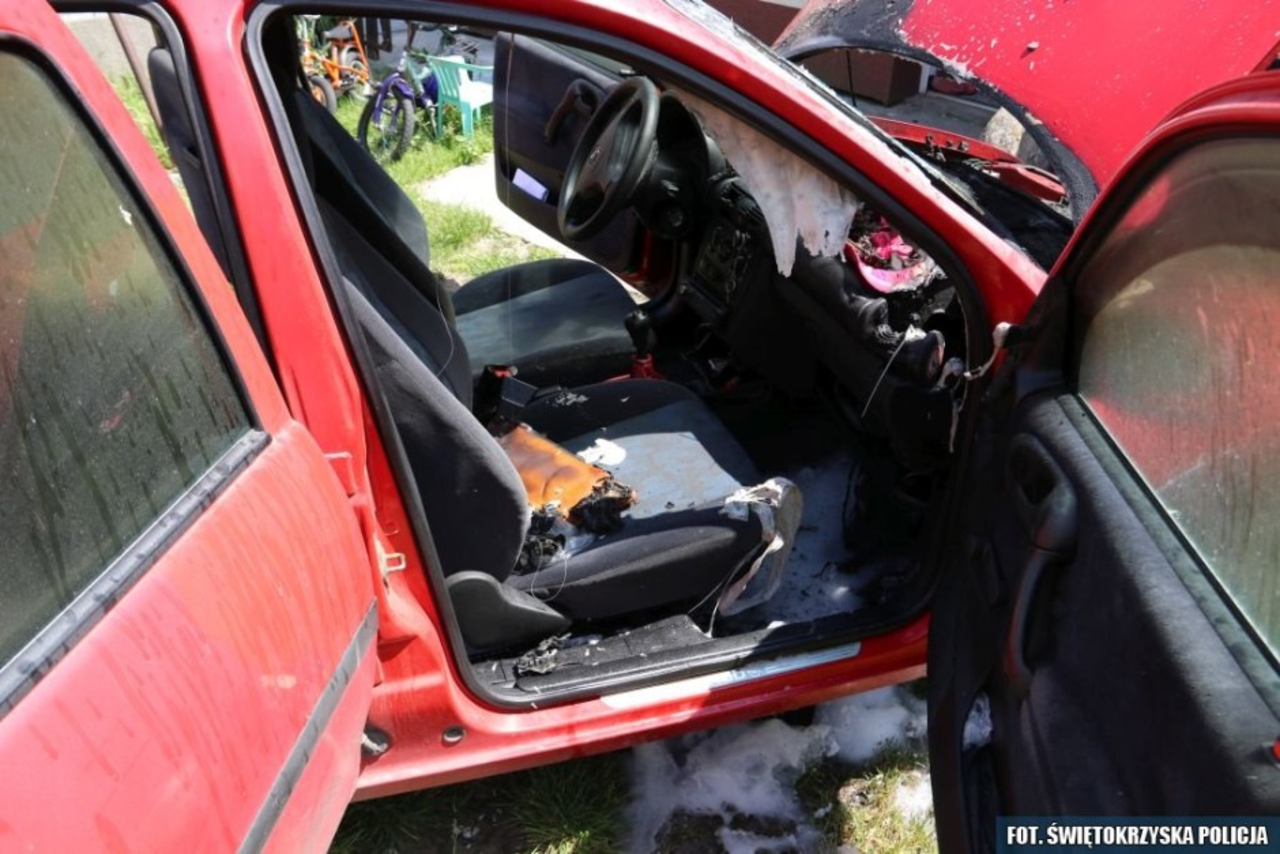 - Zgłaszająca odmówiła przekazania mu jakichkolwiek pieniędzy, więc ten spełnił groźbę. Najpierw auto oblał łatwopalną cieczą, a następnie podpalił. Kiedy kobieta wezwała służby, mężczyzna szybko odjechał swoim fiatem z posesji zgłaszającej – informuje Tomasz Piwowarski z KPP w Busku-Zdroju.