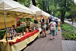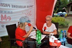 Plenerowe studio Radia eM Kielce odwiedziła także między innymi pani Krystyna Brzozowicz, technik pszczelarstwa, która specjalnie na Dni Buska ze swoimi miodami przybyła z Tomaszowa.