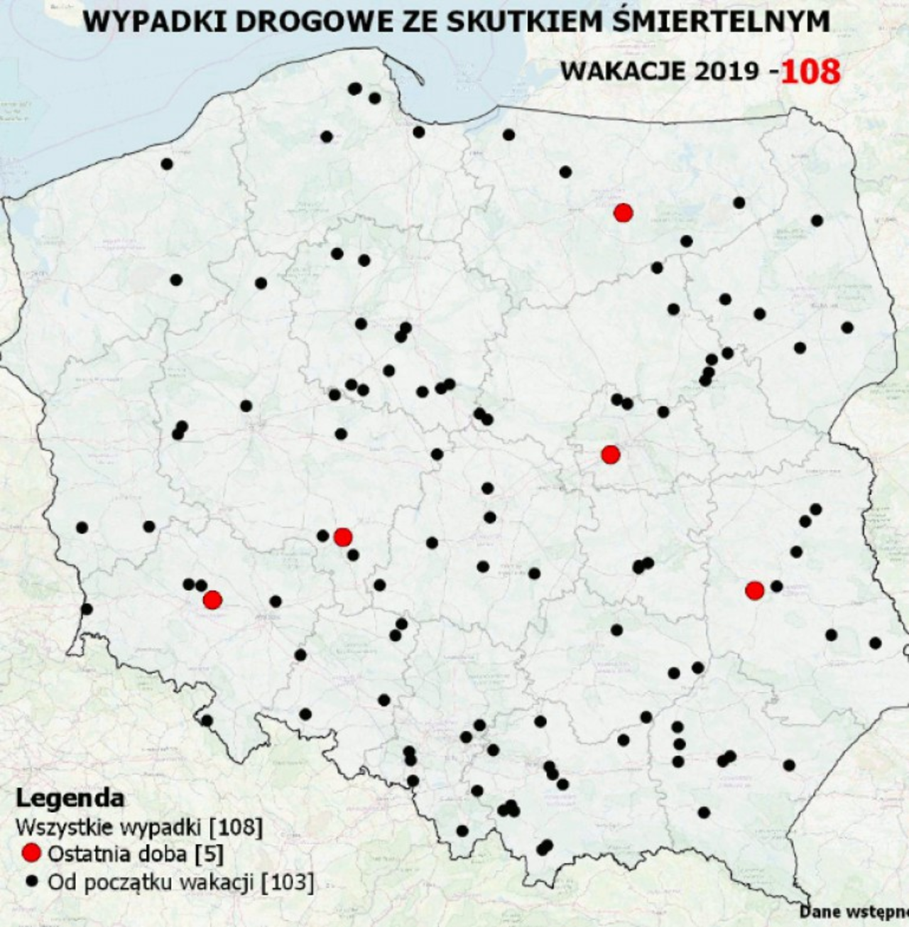 Do czterech wypadków ze skutkiem śmiertelnym doszło od początku wakacji w województwie świętokrzyskim . Na stronach Komendy Głównej Policji oraz komend powiatowych i wojewódzkich dostępna jest internetowa mapa, na której oznaczone są miejsca, gdzie doszło do tragicznych zdarzeń.
