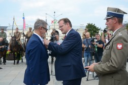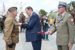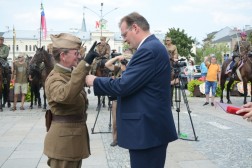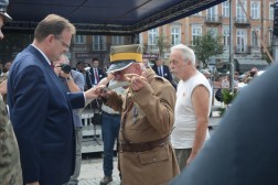 - Przyszliście tu, żeby nas powitać. Dziękuję za waszą obecność. Nasza droga do rozpoczęcia niepodległości, rozpoczęta każdego 6 sierpnia, trwa przez cały rok. Za chwilę się stąd rozejdziemy, ale w swoich miasteczkach i domach zawsze mamy krzewić pamięć o komendancie Piłsudskim i czynie 6 sierpnia - mówił komendant marszu, Dionizy Krawczyński. - Najważniejsza myśl, jaka towarzyszy od lat Marszom Szlakiem Pierwszej Kompanii Kadrowej brzmi: połączyć przeszłość z teraźniejszością i przyszłością. Kiedy byłem uczestnikiem marszu w 1993 roku, zapamiętałem chwilę modlitwy na cmentarzu jędrzejowskim, gdzie ówczesny komendant marszu powiedział do młodych strzelców: "Tu leżą wasi starsi koledzy". Ja te słowa zapamiętałem i będę pamiętał do końca życia, że my mamy tamto pokolenie strzeleckie traktować jako starszych kolegów, ale to jest naprawdę ogromne zobowiązanie, bo jeżeli możemy mówić o legionistach "koledzy", to znaczy, że mamy być wierni tym samym ideałom, którym byli wierni oni - powiedział minister Kasprzyk.