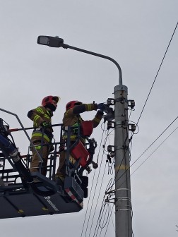 Dwa gołębie utknęły w linii energetycznej, w pobliżu ulicy Podjazdowej w Skarżysku-Kamiennej. Na szczęście do akcji wkroczyli strażacy, którzy uwolnili ptaki.
