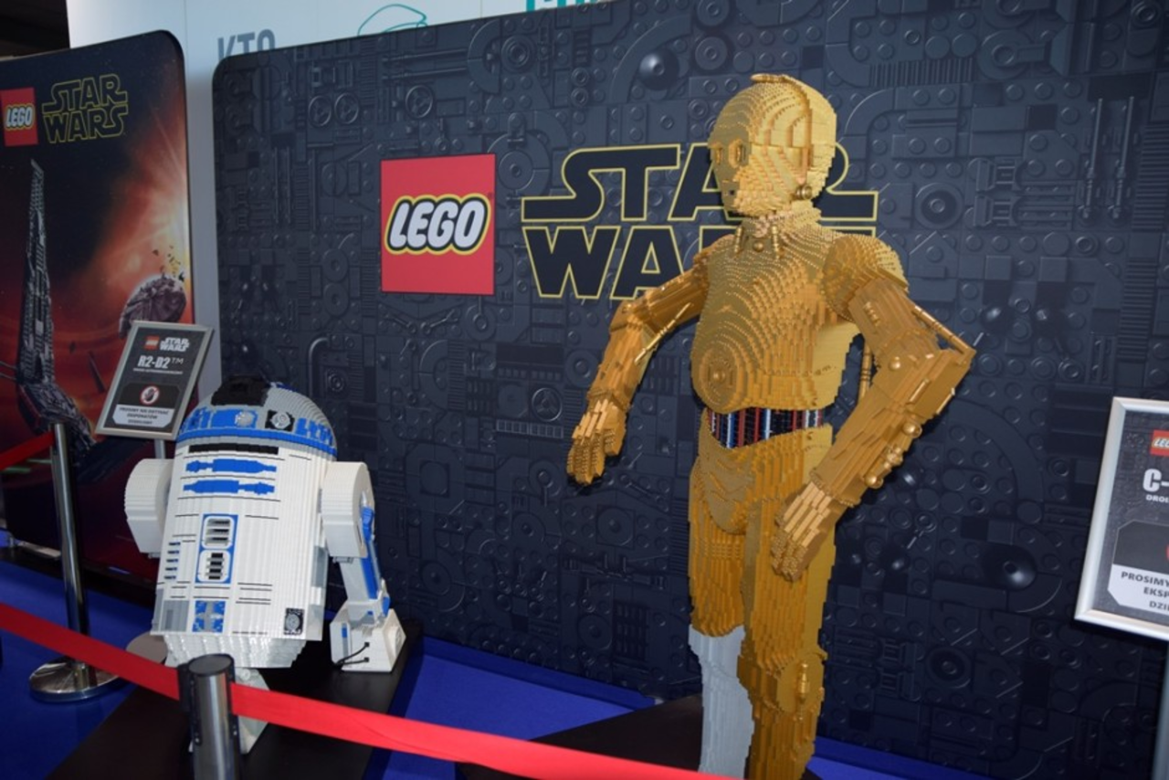 Wśród figur fani „Gwiezdnych Wojen” znajdą m.in. parę kultowych robotów - C-3PO oraz R2-D2 – w naturalnym, czyli filmowym rozmiarze. Znacznie większe od swoich pierwowzorów są figury dwóch filmowych antagonistów – Mistrza Yody i Darth Vadera – które liczą aż 3,5 metra wysokości. Na wystawie są także zbudowane z klocków postacie Anakina Skywalker’a, Luke’a Skywalker’a, Chewbakki czy szturmowców Imperium.
