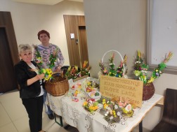 – Palmy tradycyjne wykonałyśmy pracą własnych rąk. Są kolorowe, ale jest też dużo zieleni, no i oczywiście bazie, a także len. Mamy też wykonane na szydełku jajeczka oraz stroiki – opowiadają panie Teresa i Ania, przedstawicielki Stowarzyszenia.