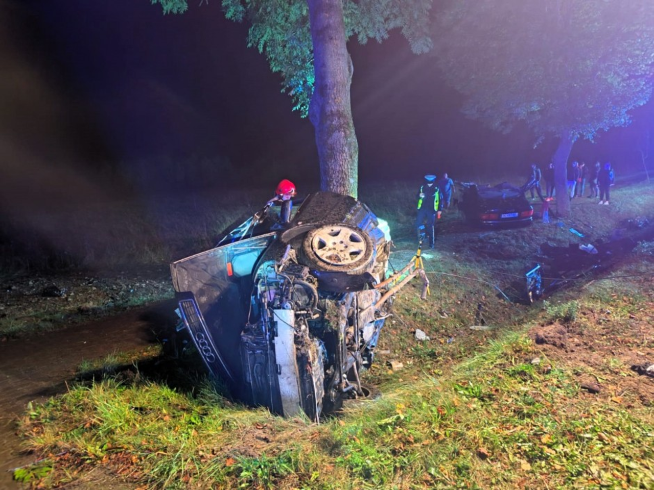 - 32-letni mężczyzna podróżujący pojazdem marki Audi zjechał z jezdni i uderzył w drzewo. W chwili przybycia służb znajdował się poza samochodem. Pomimo reanimacji życia mężczyzny nie udało się uratować. Zmarł na miejscu – powiedziała oficer prasowy.