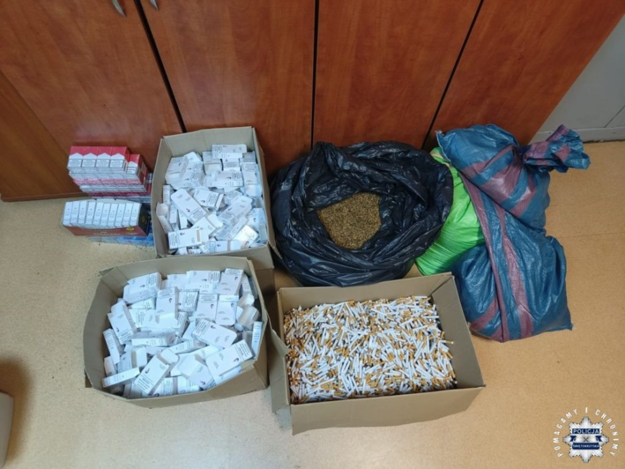 – Sprawdzili jego miejsce zamieszkania mężczyzny, gdzie w trakcie prowadzonych czynności zabezpieczyli łącznie 5473 sztuk papierosów, blisko 27 kilogramów wysuszonego tytoniu, bez polskich znaków akcyzowych oraz maszynę do produkcji papierosów – wymienia asp. Małgorzata Perkowska-Kiepas z KMP w Kielcach.