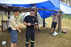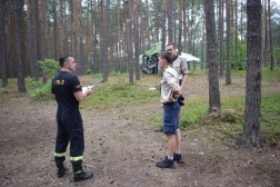 Strażacy nie tylko sprawdzili wszystkie niezbędne do zabezpieczenia obozowiska elementy takie jak gaśnice, ale także dokonali oceny próbnej ewakuacji, którą przeprowadzili harcerze. Wyniki kontroli wskazały, że obóz jest należycie zabezpieczony. – Wszystkie zainteresowane podmioty wypracowały pewne zasady. Oprócz tego, że kontrolujemy, staramy się również uświadamiać harcerzy o ich obowiązkach – tłumaczył młodszy brygadier Mariusz Góra, zastępca Komendanta Miejskiego Państwowej Straży Pożarnej w Kielcach. Wśród odwiedzających obozowisko była również policja i służby medyczne, które przedstawiły młodym ludziom zasady bezpieczeństwa i udzielania pierwszej pomocy.
