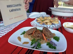 – Ktoś z rodziny pradziadka naszej koleżanki pochodził z Lwowa, udało się znaleźć stare przepisy – wyjaśnia Wanda Zieja, której koło Chełmowianie z Gminy Nowa Słupia przygotowało Hraczanyki – kotlety z mięsa mielonego i kaszy gryczanej, podane na duszonej kapuście.