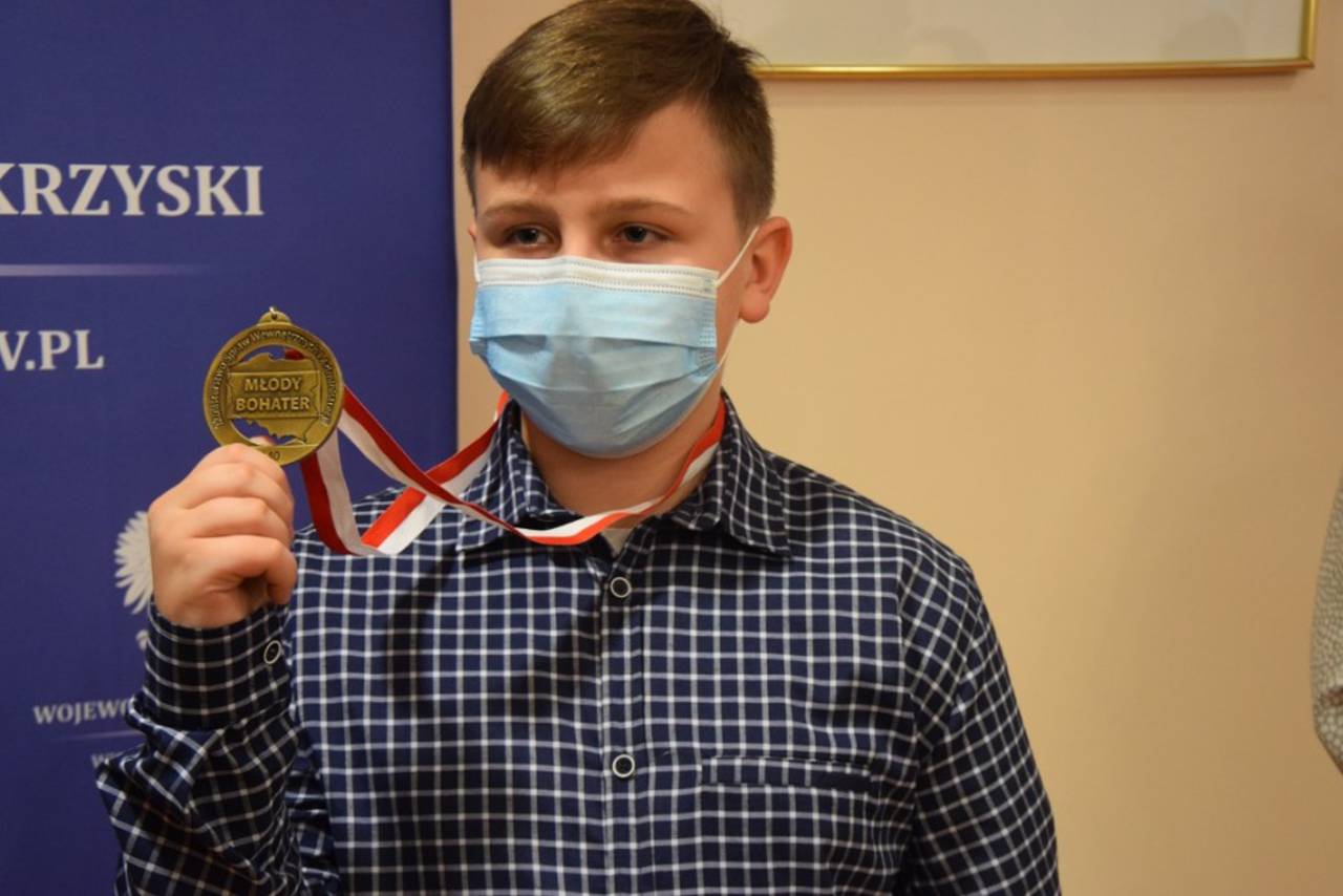 Mateusz Osiak z powiatu włoszczowskiego, choć ma dopiero 12 lat, za swoją wzorową postawę został odznaczony medalem „Młody Bohater”, przyznawanym przez Ministerstwo Spraw Wewnętrznych i Administracji. Chłopiec, dzięki opanowaniu w sytuacji zagrożenia i odpowiednim krokom, przyczynił się do ocalenia życia swojej babci.