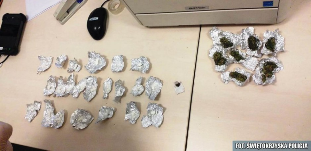 26-latek próbował uniknąć kontroli, wyrywał się i szarpał, jednak szybko został doprowadzony do komendy. Wcześniej, podczas kontroli osobistej, funkcjonariusze znaleźli przy nim kilkadziesiąt porcji białego proszku i suszu roślinnego. Ze wstępnego badania wynikało, że są to niedozwolone substancje odurzające: marihuana, amfetamina oraz haszysz.