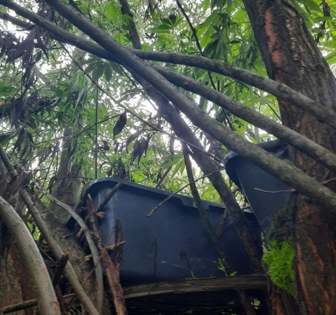 Do odkrycia doszło w jednej z miejscowości na terenie gminy Stopnica. Policjanci, którzy przybyli na miejsce zauważyli wierzbę zdecydowanie różniącą się od innych drzew. Na wysokości około sześciu metrów nad ziemią, na gałęziach, znajdowały się dwa plastikowe pojemniki.