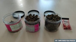 Mundurowi przeszukali domy wszystkich pasażerów auta. W mieszkaniach 19- oraz 23-latka znaleźli kolejne narkotyki - łącznie około 40 gramów suszu roślinnego i ponad 14 gramów amfetaminy.