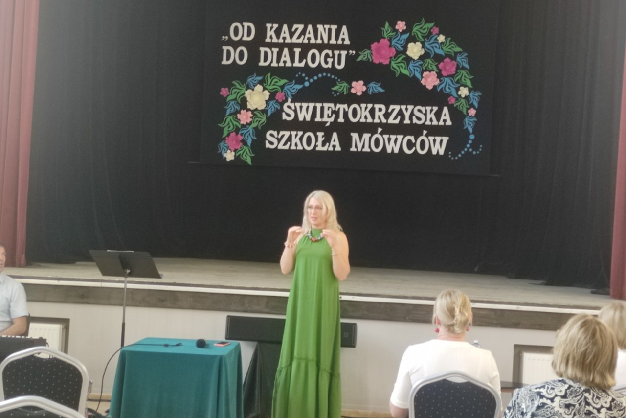 – Pomysł na te zajęcia powstał w momencie pandemii. Byliśmy wtedy zamknięci, przerażeni i w zupełnie innej sytuacji komunikacyjnej. Byliśmy my, cyberprzestrzeń i telewizja. Chciałam coś w tym kierunku zrobić. Przedstawić jak na nowo podejść do rozmowy. Napisałam projekt do Ministerstwa Kultury i Dziedzictwa Narodowego w ramach programu „Ojczysty – dodaj do ulubionych”. W 2022 roku przeprowadziliśmy pierwszą edycję w ramach wakacyjnej szkoły mówców. A w tym roku udało się zorganizować te prelekcje jeszcze przed urlopami wakacyjnymi – opowiada Katarzyna Cedro, dyrektor Gminnego Ośrodka Kultury, Sportu i Turystyki w Rudkach.