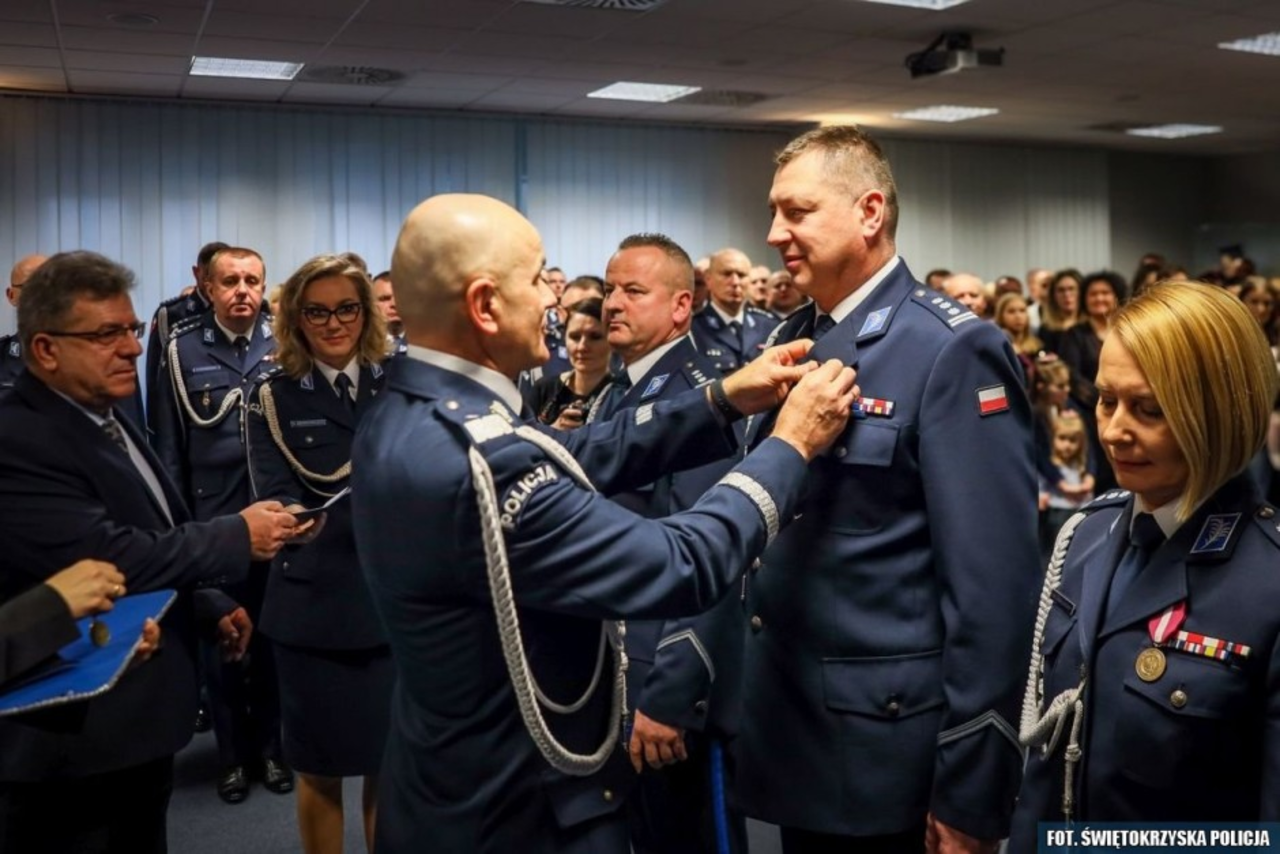 - Złotą odznakę otrzymali inspektor Jarosław Tokarczyk – pierwszy zastępca Komendanta Wojewódzkiego Policji w Kielcach, inspektor Andrzej Patrzałek – zastępca komendanta oraz insp Agata Malasińska- Nagórny, także zastępca – informuje Damian Janus z zespołu prasowego świętokrzyskiej policji.