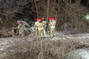 Zasnął i uderzył w drzewo. Matka z dzieckiem poszkodowani