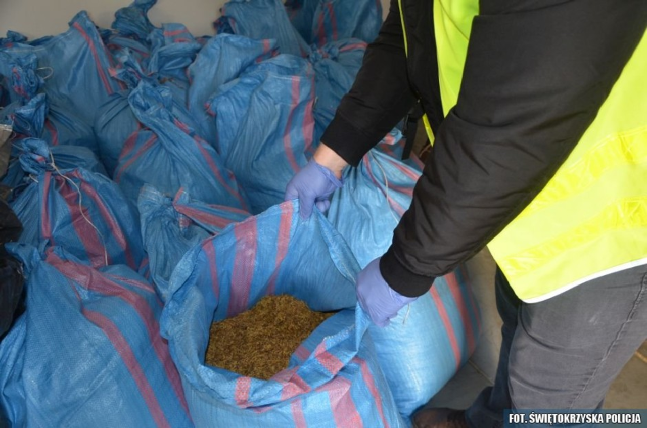 Przejęte worki pełne krajanki tytoniu, a także liście tytoniu – to efekty akcji funkcjonariuszy z Kazimierzy Wielkiej. W ich ręce wpadło prawie pół tony kontrabandy, a także prowadzący nielegalny interes mężczyźni.