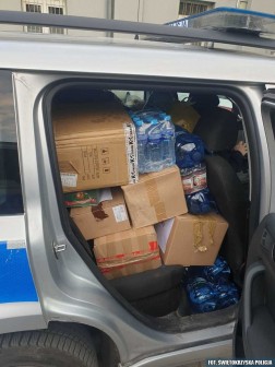 Z punktu zbiórki darów przy ulicy Sienkiewicza 76, policjanci dostarczyli paczki do uchodźców na terenie Kielc i pobliskich gmin.