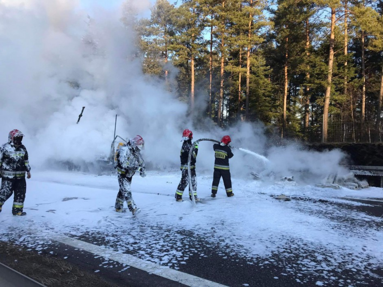 Pożar naczepy na S7. Na miejscu strażacy