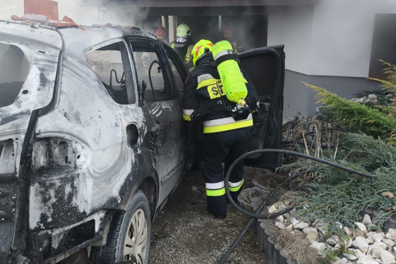 Z pożarem samochodu zaparkowanego w przydomowym garażu, walczyli wczoraj (19 grudnia) staszowscy strażacy. Nikt z mieszkańców nikt nie został ranny, pomocy medycznej potrzebował jednak pies.