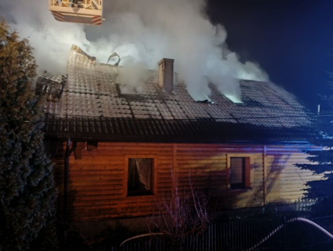W Lubieni, pożar wybuchł około godziny 20.30. Ogień pojawił się w drewnianym budynku mieszkalnym.