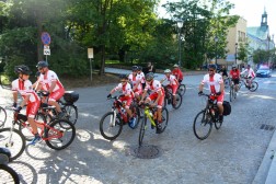 Rowerzyści podzieleni są na dwie piętnastoosobowe grupy, jedną z nich prowadzi Kazimierz Mądzik, świętokrzyski kurator oświaty, a drugą Grzegorz Skiba, radny gminy Górno