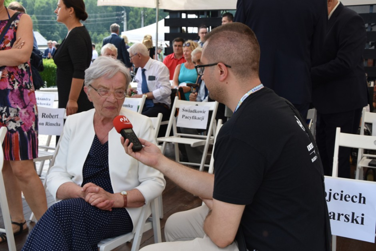 Rozmowa z Marianną Wikło podczas uroczystości otwarcia Mauzoleum Martyrologii Wsi Polskich.