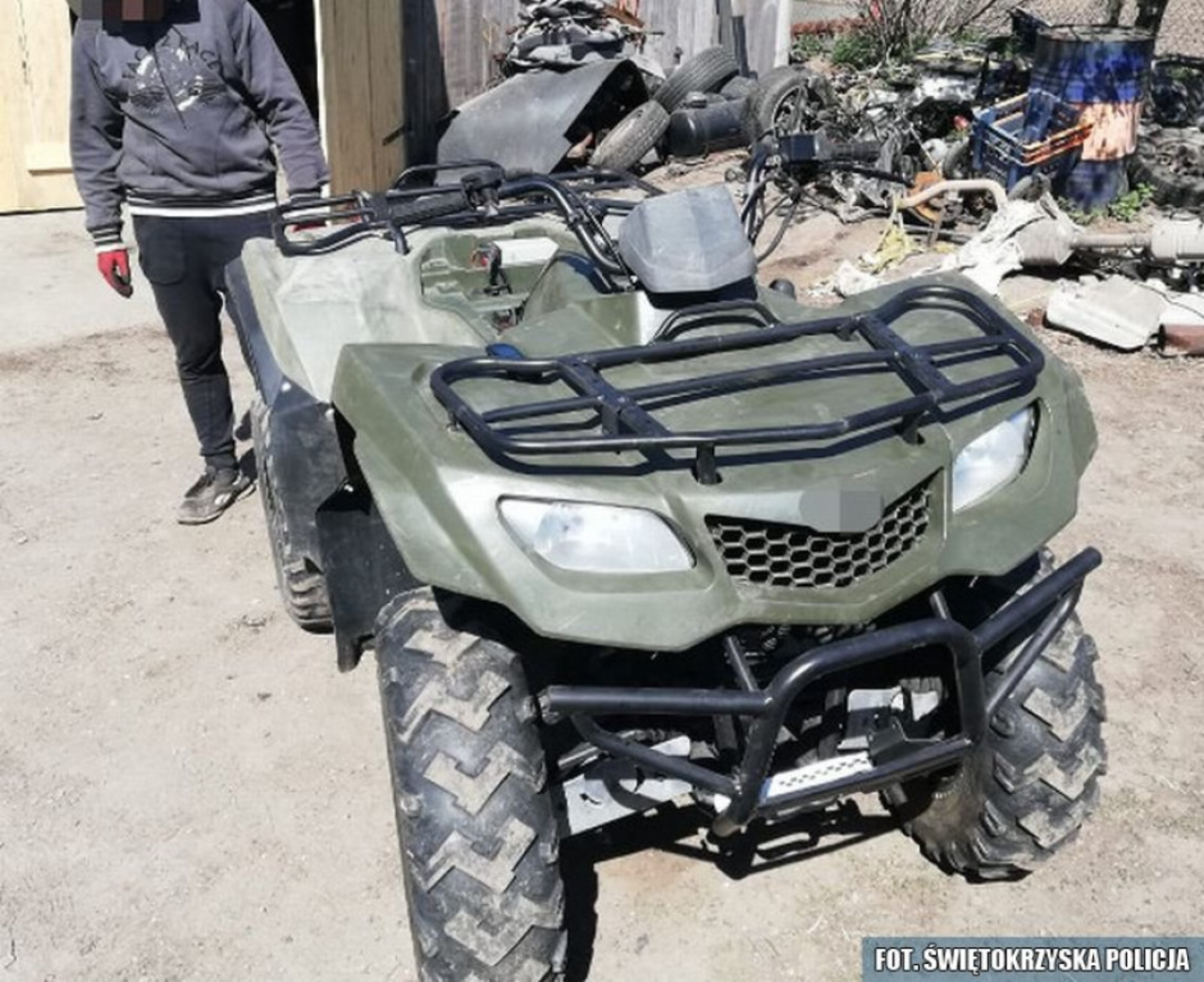 Pińczowscy kryminalni ustalili, że na jednej z posesji w gminie Złota może znajdować się pojazd pochodzący z kradzieży. Zebrane przez nich informacje potwierdziły się - policjanci odwiedzili podejrzanego 27-latka i zatrzymali go w momencie, gdy próbował ukryć skradzionego quada. Na widok mundurowych zaczął pchać czterokołowca w stronę lasu, a potem uciekać.
