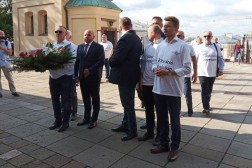 Podczas spotkania pod kielecką bazyliką katedralną, działacze Solidarnej Polski złożyli wieńce pod pomnikiem błogosławionego księdza Jerzego Popiełuszki oraz pod tablicą upamiętniającą świętej pamięci wicepremiera Przemysława Gosiewskiego.