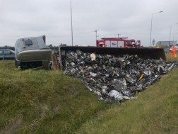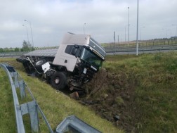 - 45-letni mieszkaniec Ostrowca Świętokrzyskiego z nieustalonych dotąd przyczyn zjechał z drogi i uderzył w bariery energochłonne. Ciężarówka przewróciła się na bok i znalazła się poza jezdnią. Na szczęście kierowca nie odniósł poważnych obrażeń – powiedziała policjantka.