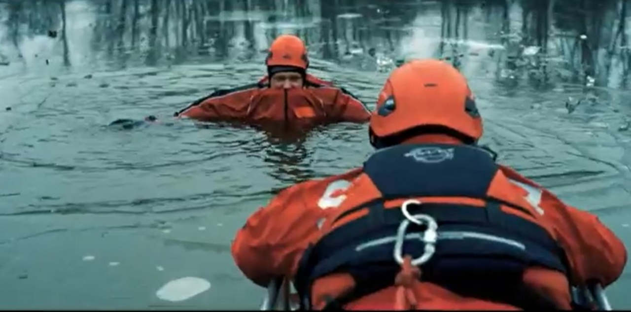 - Widzimy tam pewną sytuację: ojciec bierze córkę nad zamarznięty akwen wodny, by pojeździć na łyżwach. Lód załamuje się pod mężczyzną, dziewczynka wzywa pomoc. Następnie jesteśmy świadkami akcji ratunkowej – opowiada st. kpt. Marin Bajur z Komendy Wojewódzkiej PSP w Kielcach.
