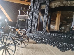 – Nawet frędzle, które tutaj zdobią karawan, te tkaniny udało się w większości zachować. Elementy blachy, które wieńczą dach też zostały zachowane. Jest to pojazd drewniany z elementami metalowymi kutymi – opowiada Wioletta Brzezińska-Marjanowska, dział konserwacji zbiorów Muzeum Wsi Kieleckiej.