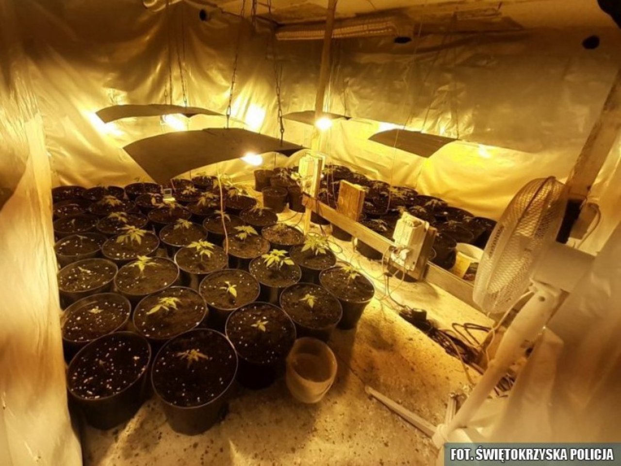 - Starszy z nich, zaskoczony wizytą mundurowych, twierdził, że nie robi niczego, co byłoby niezgodne z prawem. Policjanci dotarli do piwnicy budynku gospodarczego. Tam okazało się, że budowla skrywa dodatkowe pomieszczenie, w którym znajdowała się profesjonalna uprawa nielegalnych konopi – informuje Maciej Ślusarczyk z Komendy Wojewódzkiej Policji w Kielcach.