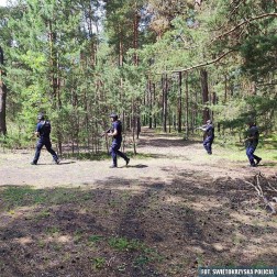 – Napastnik zbiegł do lasu w kierunku strzelnicy. Pies służbowy szybko podjął trop za uciekinierem. Ten skrył się w opuszczonym budynku i strzelał do mundurowych, po krótkiej wyminie ognia bandyta poddał się i został zatrzymany – relacjonuje policjant.