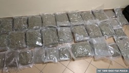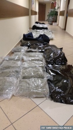 Na trop 37 i 44-latka wpadli funkcjonariusze z Komendy Miejskiej i Wojewódzkiej Policji w Kielcach. Z informacji, do których dotarli wynikało, że przez województwo świętokrzyskie przewożone mają być znaczne ilości narkotyków. Mundurowi zatrzymali do kontroli drogowej dostawczego mercedesa, którym jechali znani policjantom z przestępczej działalności mieszkańcy powiatu jędrzejowskiego. Przewozili oni 3 duże torby, w których znajdowało się kilkadziesiąt mniejszych, hermetycznie zapakowanych torebek z marihuaną.