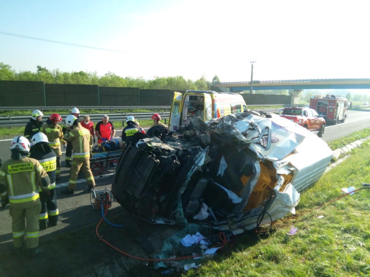 Na miejsce zadysponowano pięć jednostek straży pożarnej. Kierowca busa był zakleszczony w pojeździe i konieczna była interwencja strażaków.
