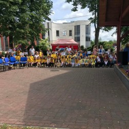 Festyn odbył się na dużym terenie zielonym przed szkołą.