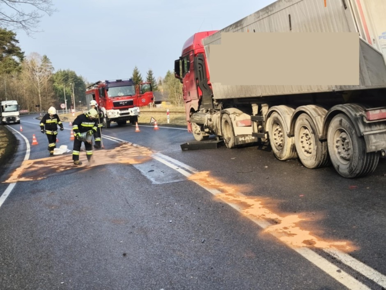 – Działania strażaków polegały na zabezpieczeniu miejsca zdarzenia, udzieleniu kwalifikowanej pierwszej pomocy oraz sorpcji rozlanych płynów eksploatacyjnych z pojazdów. Droga jeszcze jest zablokowana – mówi strażak.