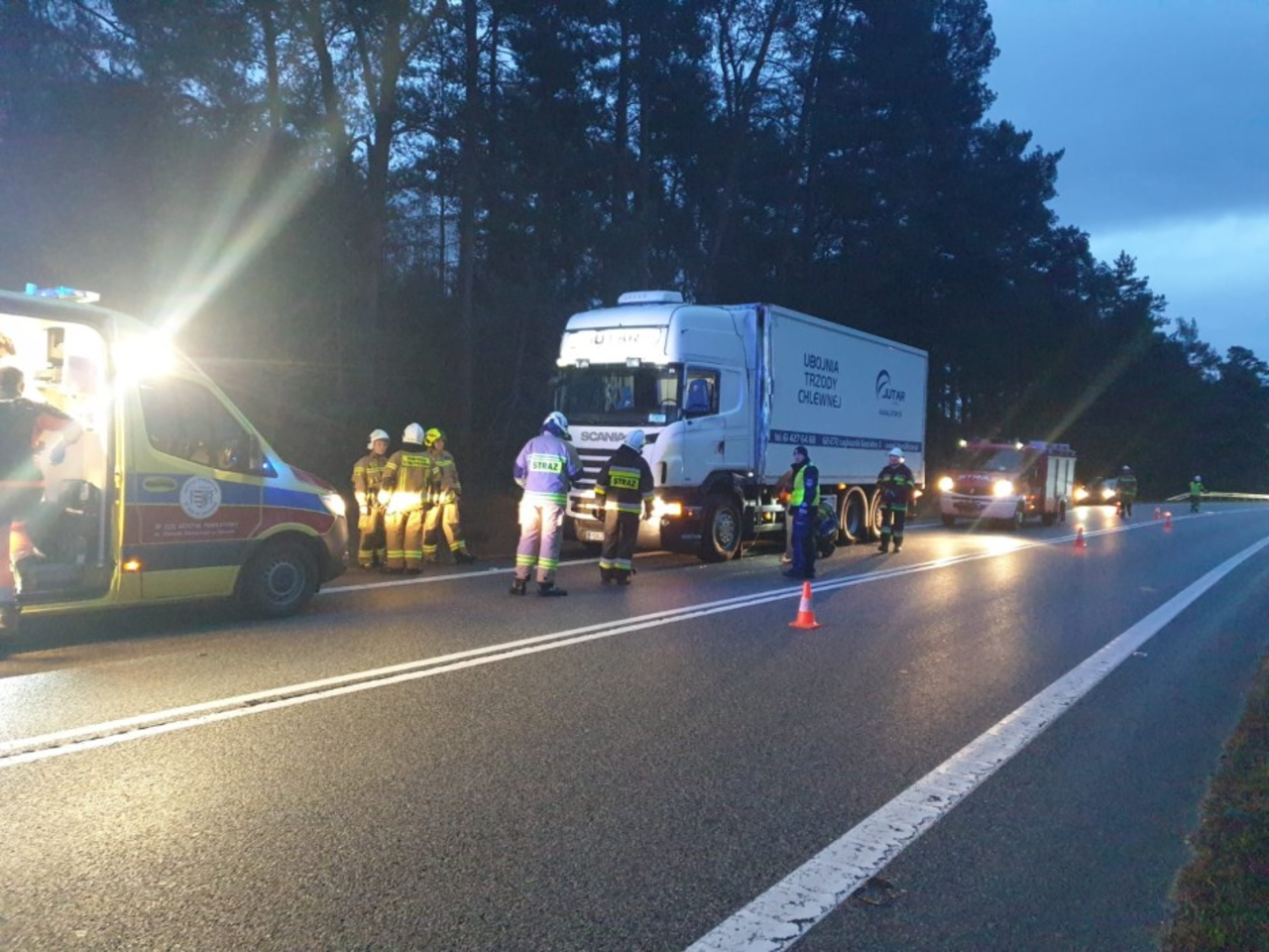 - Ciężarówki otarły się w trakcie wymijania. Na skutek zdarzenia kierowca scanii doznał niewielkich obrażeń spowodowanych potłuczoną szybą i został zabrany do szpitala. Drugi pojazd odjechał z miejsca wypadku – informuje mł. bryg. Mariusz Czapelski z KPP w Końskich.