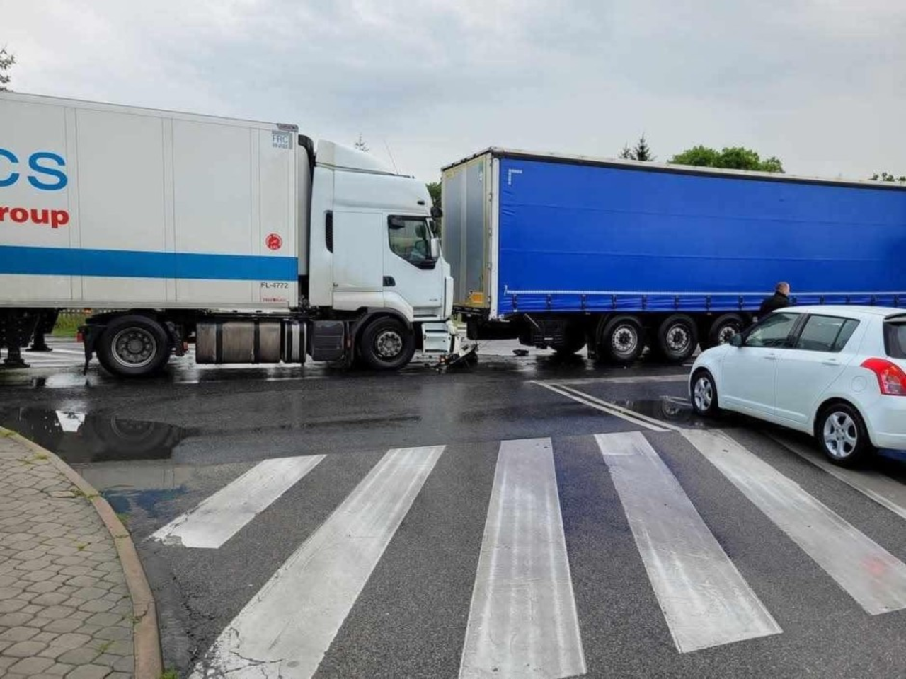 Jak mówi asp. sztab. Tomasz Piwowarski z KPP w Busku-Zdroju, kierowca jednej z ciężarówek zatrzymał się przed przejściem dla pieszych.