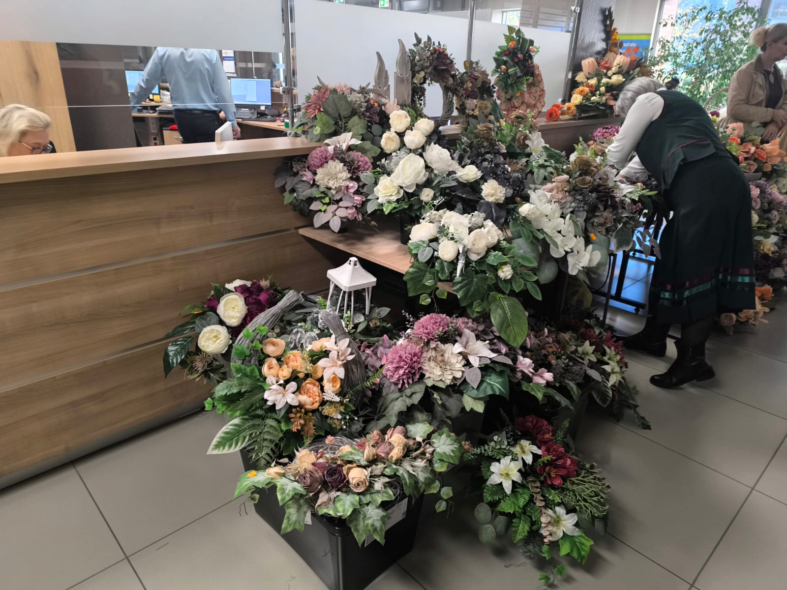 – Mamy kompozycje z kwiatów sztucznych bardzo wysokiej jakości. W zależności od preferencji klientów, proponujemy kompozycje kontrastowe z użyciem mocnych kolorów, wiele odcieni pasteli i kremowych barw. Zapraszamy nie tylko po pojedyncze stroiki, ale całe komplety – zachęca Kinga Kwiatkowska.