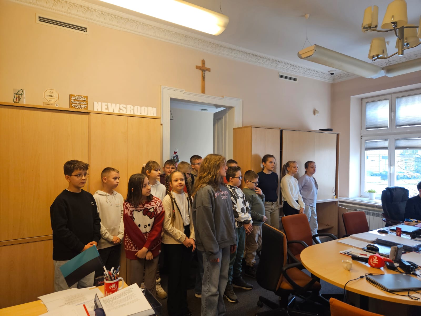 Poznali zasady pracy dziennikarzy, zobaczyli jak wygląda serwis lokalny „od kuchni”, udzielili wywiadu i nagrali świąteczne życzenia. Siedzibę Radia eM Kielce odwiedzili dziś (16 grudnia) uczniowie Szkoły Podstawowej im. Edmunda Niziurskiego w Słopcu.