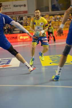 Tak jak się spodziewano w podstawowym składzie gości oprócz Jurkiewicza, Pusicia Piechowskiego i Rochy nie zobaczyliśmy również Ivana Nikcevicia. Jednak w pierwszej połowie nie dało się odczuć, że nafciarzy meczą tak ogromne problemy kadrowe. Podopieczni Manolo Cadenasa wysoko zawiesili poprzeczkę kielczanom. Od samego początku w szeregach obu ekip można było odczuć sporą nerwowość w ofensywie. Więcej zepsutych sytuacji notował zespół z Kielc, ale pomimo tego po 8 min. gracze Dujszebajewa po raz pierwszy odskoczyli rywalom na dwa gole (5:3). Kiedy wydawało się, że to początek dominacji Vive, wiślacy włączyli drugi bieg. Przyjezdni wykorzystywali każdy błąd gospodarzy. W ciągu kilku minut zdobyli 4 bramki z rzędu, a na tablicy wyników było już 5:7. Dobre zawody rozgrywał Kamil Syprzak i Michał Daszek, który z konieczności musiał wystąpić na środku rozegrania. Kielczanie niesieni fantastycznym dopingiem szybko wyrównali, ale główna w tym zasługa stojącego pomiędzy słupkami Sławomira Szmala. Był to jedyny zawodnik Vive Tauron, którego z czystym sumieniem można było pochwalić po pierwszej połowie. Kielecka drużyna wprawdzie schodziła na przerwę z dwoma bramkami przewagi (13:11), ale styl gry pozostawiał wiele do życzenia. Oba zespoły popełniły ponad 20 błędów własnych, co na finał PGNiG SuperLigi jest zdecydowanie zbyt wysoką liczbą.