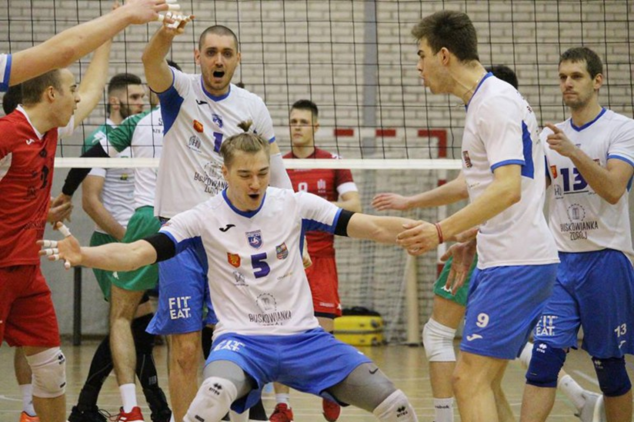 Siatkarze Buskowianki Kielce po dwóch wyraźnych porażkach z czołowymi klubami pierwszej ligi w końcu do swojego konta dopisali punkty. Podopieczni Mateusza Grabdy w spotkaniu 19. kolejki pokonali na wyjeździe AZS AHG Kraków 3:2 (25:23, 22:25, 17:25, 27:25, 15:13). Świetne zawody rozegrał przyjmujący kieleckiej ekipy – Sławomir Busch, który zdobył 26 punktów.