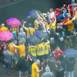Final Four Ligi Mistrzów oficjalnie rozpoczęte! W piątkowe popołudnie na terenie Lanxess Areny zorganizowano „Opening Party" na którym pojawiła się rzesza kibiców klubów, które w sobotę w Kolonii rozpoczną bój o tytuł najlepszej drużyny Europy. Najbardziej widoczni byli fani węgierskiego Veszprem i oczywiście Vive Tauronu Kielce. Poniżej kilka zdjęć z piątkowej „deszczowej” imprezy.