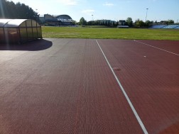 – To bardzo szczelna nawierzchnia kauczukowa, która jest klejona na ciepło. Zazwyczaj jest tak, że w momencie, kiedy jest ona nagrzana przez słońce, to wilgoć, która była pod nawierzchnią, i nie da się jej uniknąć, zamienia się w gaz i powoduje bąble. One są teraz nacinane i jest tam wtryskiwany rozgrzany klei – wyjaśniał Przemysław Chmiel, dyrektor Miejskiego Ośrodka Sportu i Rekreacji w Kielcach.