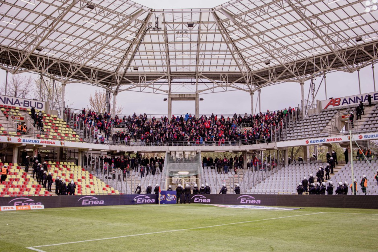 Niedzielne spotkanie Korony Kielce z Rakowem Częstochowa przyniosło zamieszanie na trybunach. Kibice nowego mistrza Polski dokonali aktu wandalizmu w sektorze gości.