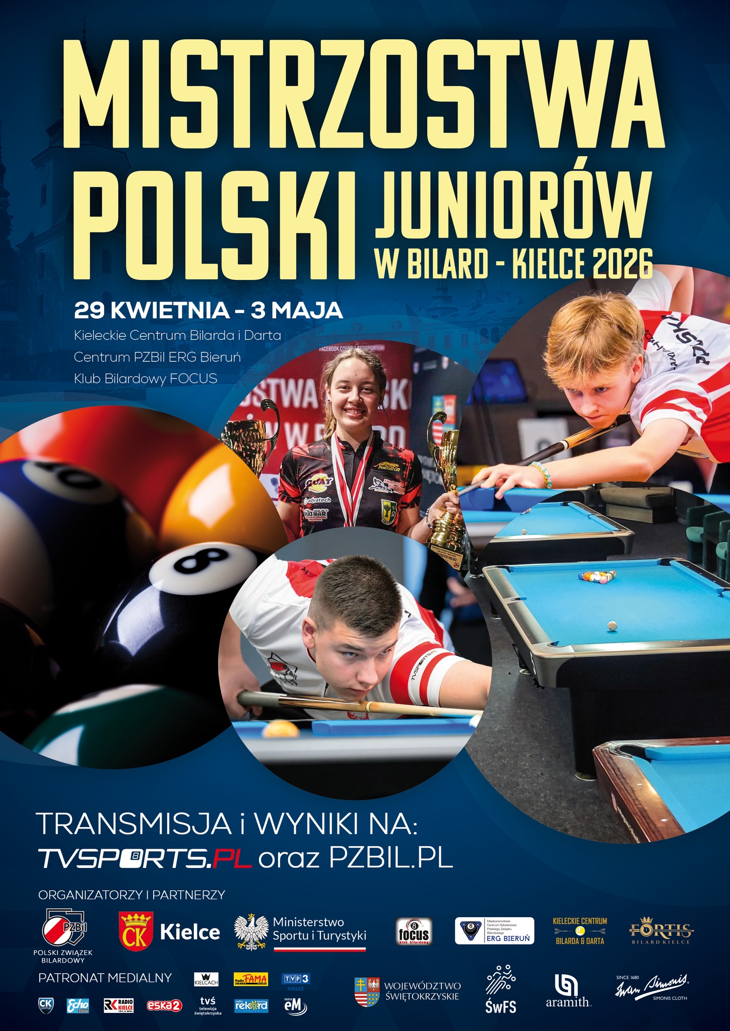 W dniach 29 kwietnia - 3 maja w Kieleckim Centrum Bilardu i Darta odbędą się mistrzostwa Polski juniorów w bilardzie.