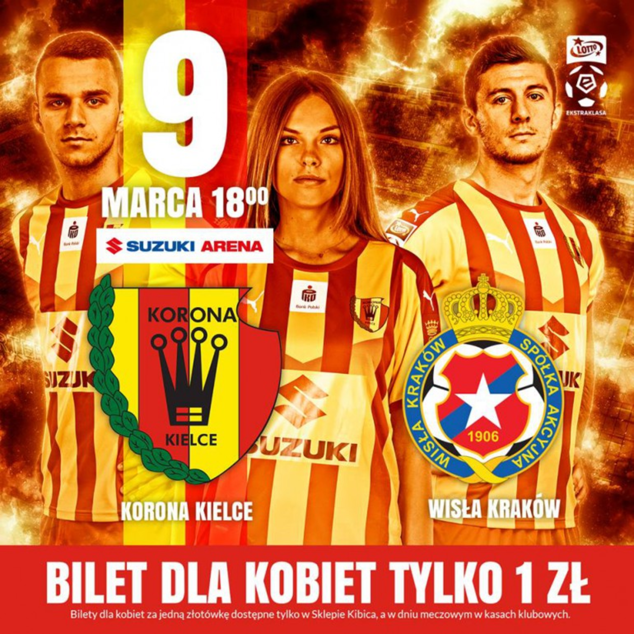 Piłkarze Korony Kielce w sobotę na Suzuki Arenie postarają się zatrzeć plamę po ostatnim bardzo słabym występie w Sosnowcu. Podopieczni Gino Lettieriego podejmą Wisłę Kraków. Z racji Dnia Kobiet "żółto-czerwony" klub przygotował specjalną promocję dla swoich fanek, które za bilet zapłacą tylko złotówkę.