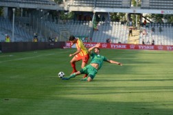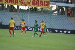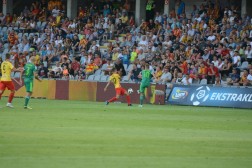 Spotkanie zaczęło się fatalnie dla gospodarzy. Już w 10 min. katastrofalny błąd popełnił bramkarz Hamrol, który zbyt daleko wypuścił sobie piłkę po podaniu z autu Kallaste. Pomyłkę momentalnie wykorzystał Marcin Robak, który błyskawicznie przejął futbolówkę i skierował ją do pustej bramki.